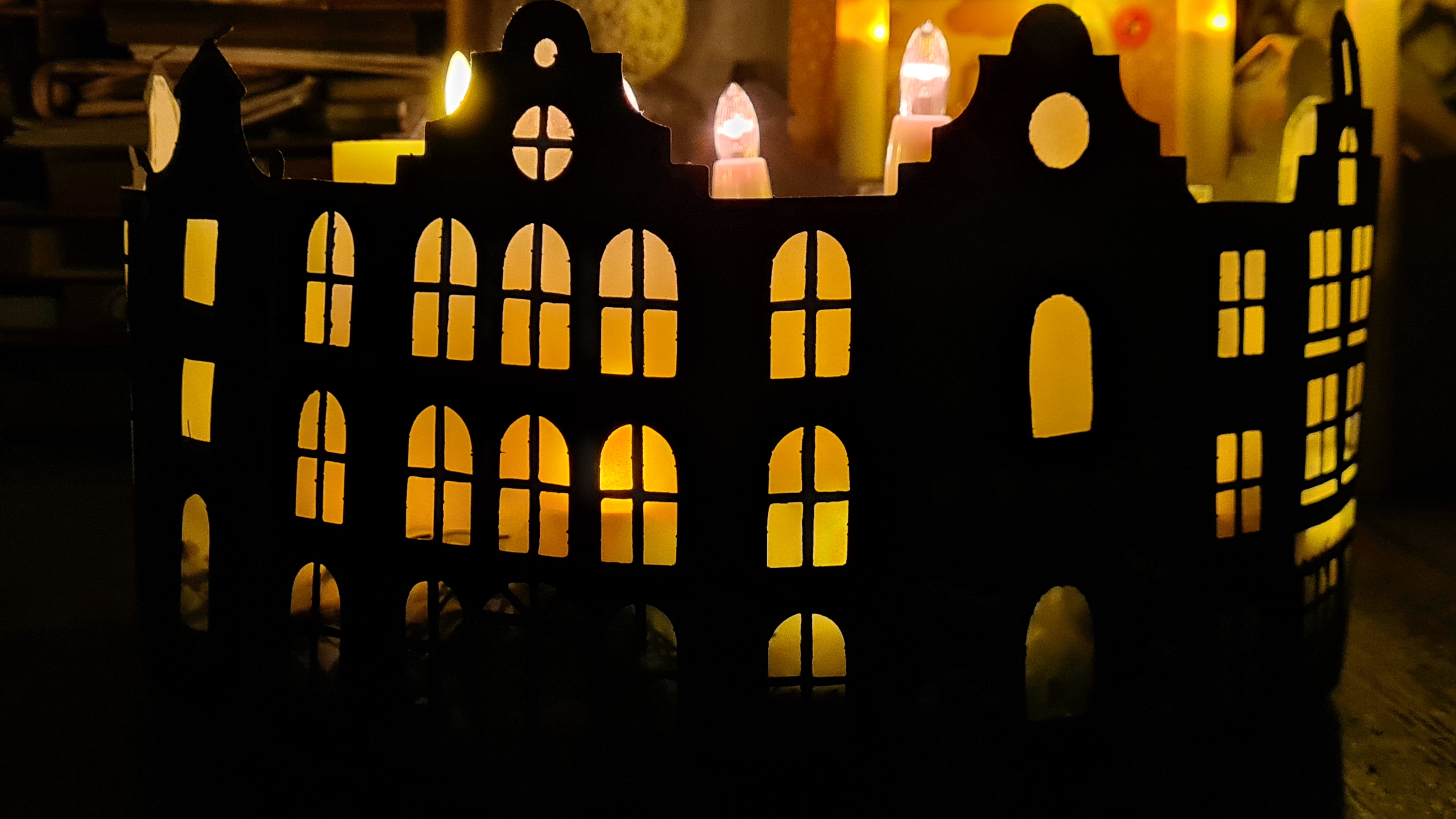 Il vous faudra : un plateau tournant bon marché, quelques façades en papier de maisons décorées avec élégance, quelques branches de sapin naturelles pour le décor et le côté Nature, quelques bougies led et la magie va opérer !